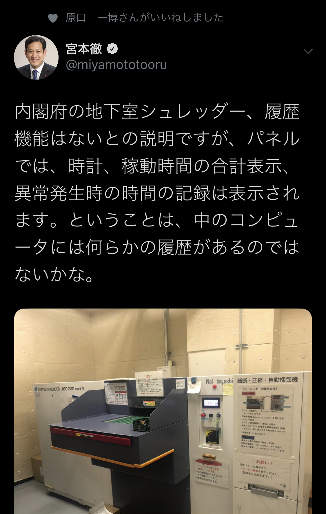 引用元: ・共産・宮本徹(衆)「内閣府のシュレッダー、中のコンピュータには何らかの履歴があるのでは」←は?