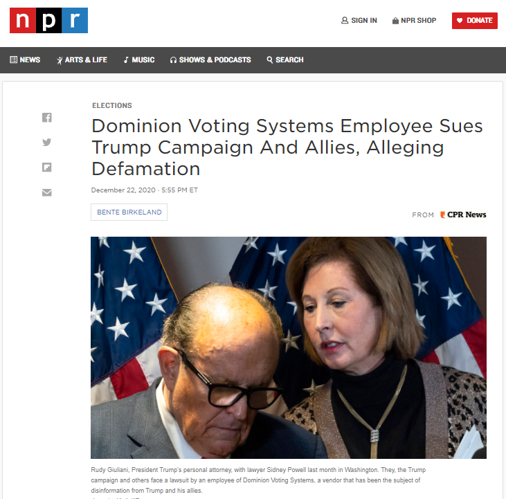 https://www.npr.org/2020/12/22/949294173/dominion-voting-systems-employee-sues-trump-campaign-and-allies-for-defamation