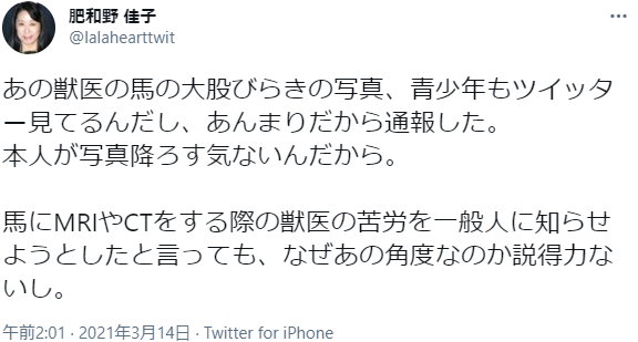 引用元: ・【ウマ】獣医のあげた馬のCT撮影写真に女さんがブチギレ「写真を即刻消してください。馬にも基本的馬権があると思います」 ★5 [potato★]