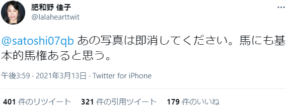 ※投稿者やツイート元への誹謗中傷はご遠慮ください。「基本的馬権」に関しての議論を趣旨とした記事です。