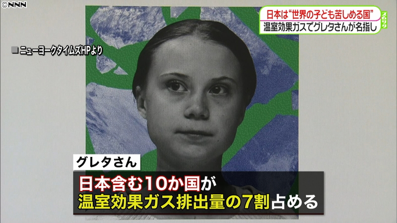 スウェーデンの環境活動家・グレタさんが日本を名指しして、大量に排出する温室効果ガスが世界の子どもたちを苦しめると訴えました。