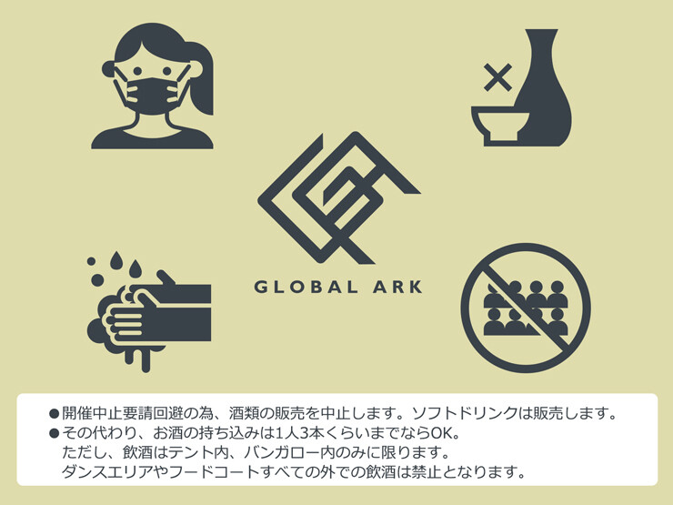 8月27~29日に群馬県利根郡片品村のほたか牧場キャンプ場で開催される音楽イベント「GLOBAL ARK 2021-The 10th Anniversary-」が設けた「不織布マスクNG」といったルールに対して、ネット上で批判の声が続出している。(´・ω・`)「開催中止要請回避の為、お酒販売しません!その代わり一人3本づつぐらい持ってきてもいいぞ!」駄目だ、なんの為に規制してるのか理解していない。