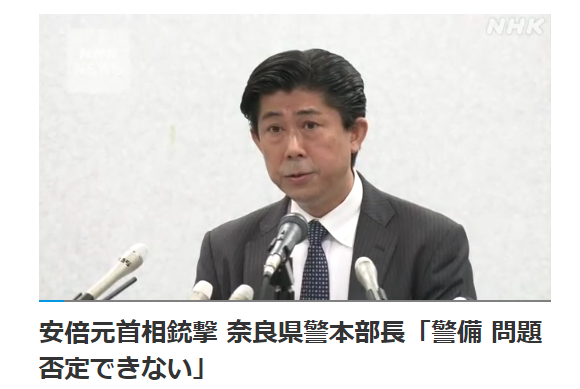 奈良県警察本部の鬼塚本部長は記者会見で「このような重大な結果が出たことを踏まえ、今回の安倍元総理大臣の警護、警備に関する問題があったことは否定できないと考えており、早急にその問題点を把握し、適切な対策を講じて参る」と述べました。
