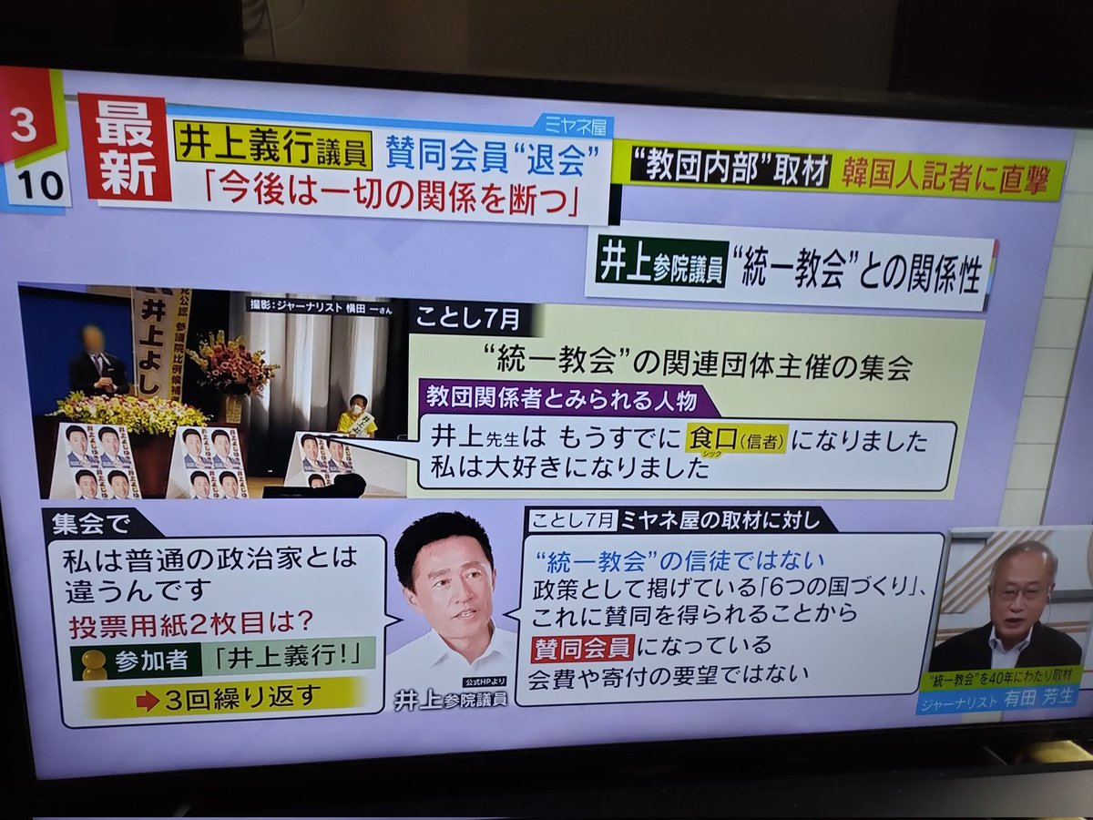 山上容疑者へ「甘ったれるな」 旧統一教会の支援受けた自民・井上氏