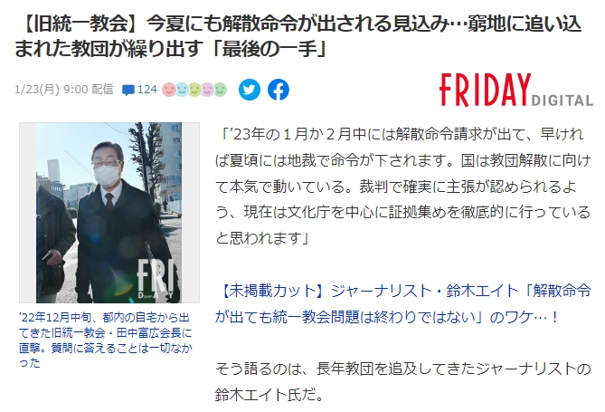 【旧統一教会】今夏にも解散命令が出される見込み…