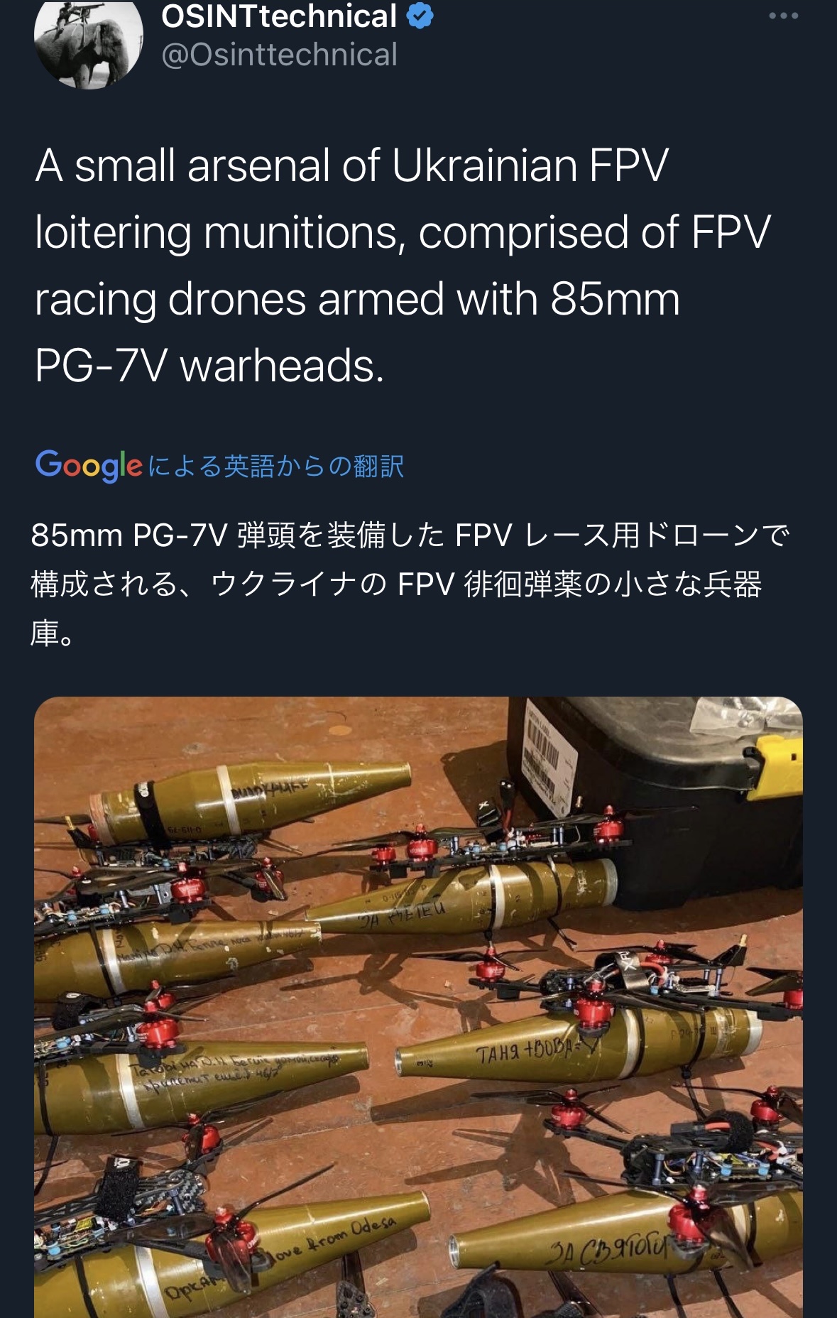 ロシアの自爆ドローンの映像はほぼ100パー別のドローンの俯瞰映像付いてるぞ