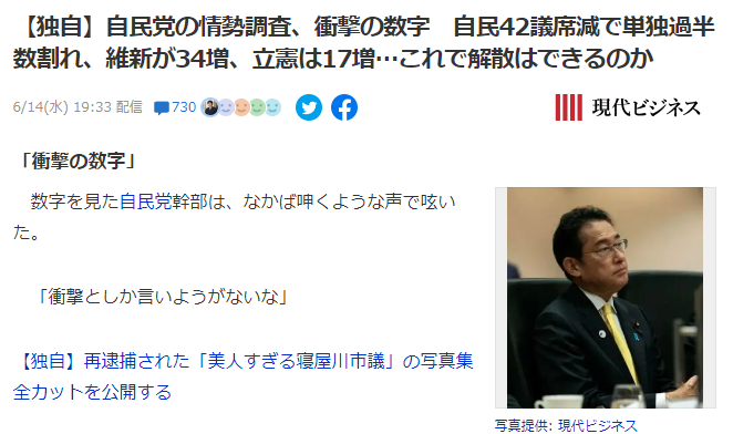 1: 名無しさん 2023/06/15(木) 05:54:06.02 ID:Shd4Wh3P0 BE:659060378-2BP(7000)(´・ω・`)うわーこれは解散されたら野党の進撃だ困るー