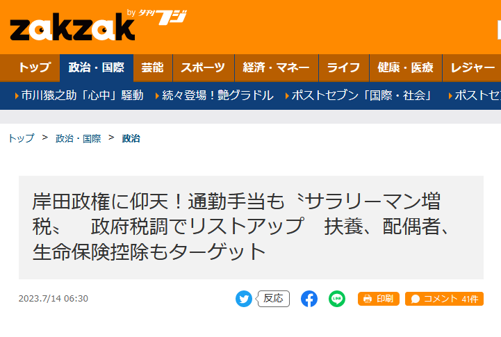 星野氏は「給与所得控除の見直しはサラリーマンをはじめ幅広い層に影響が及ぶ。非課税所得である社宅の貸与や通勤手当などが課税対象になれば企業の福利厚生戦略だけでなく、少子化に拍車をかけかねない」と話す。https://www.zakzak.co.jp/article/20230714-FDE4BDZX3VJGVEAO3577PEX3MU/2/