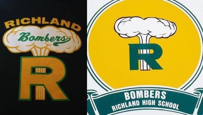【悲報】アメリカの高校、原爆キノコ雲を高校のトレードマークにしてしまうwww