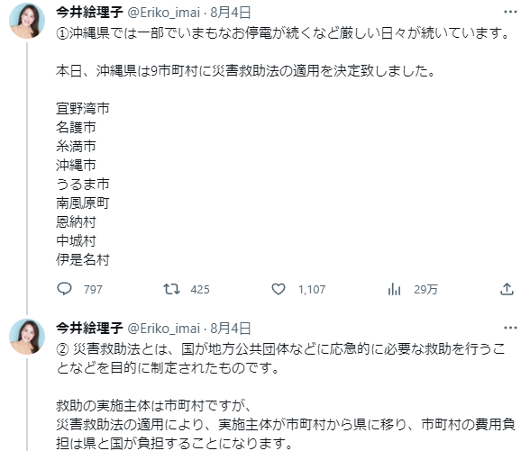 【悲報】今井絵理子さん、台風ツイート31連発でごまかす [128776494]