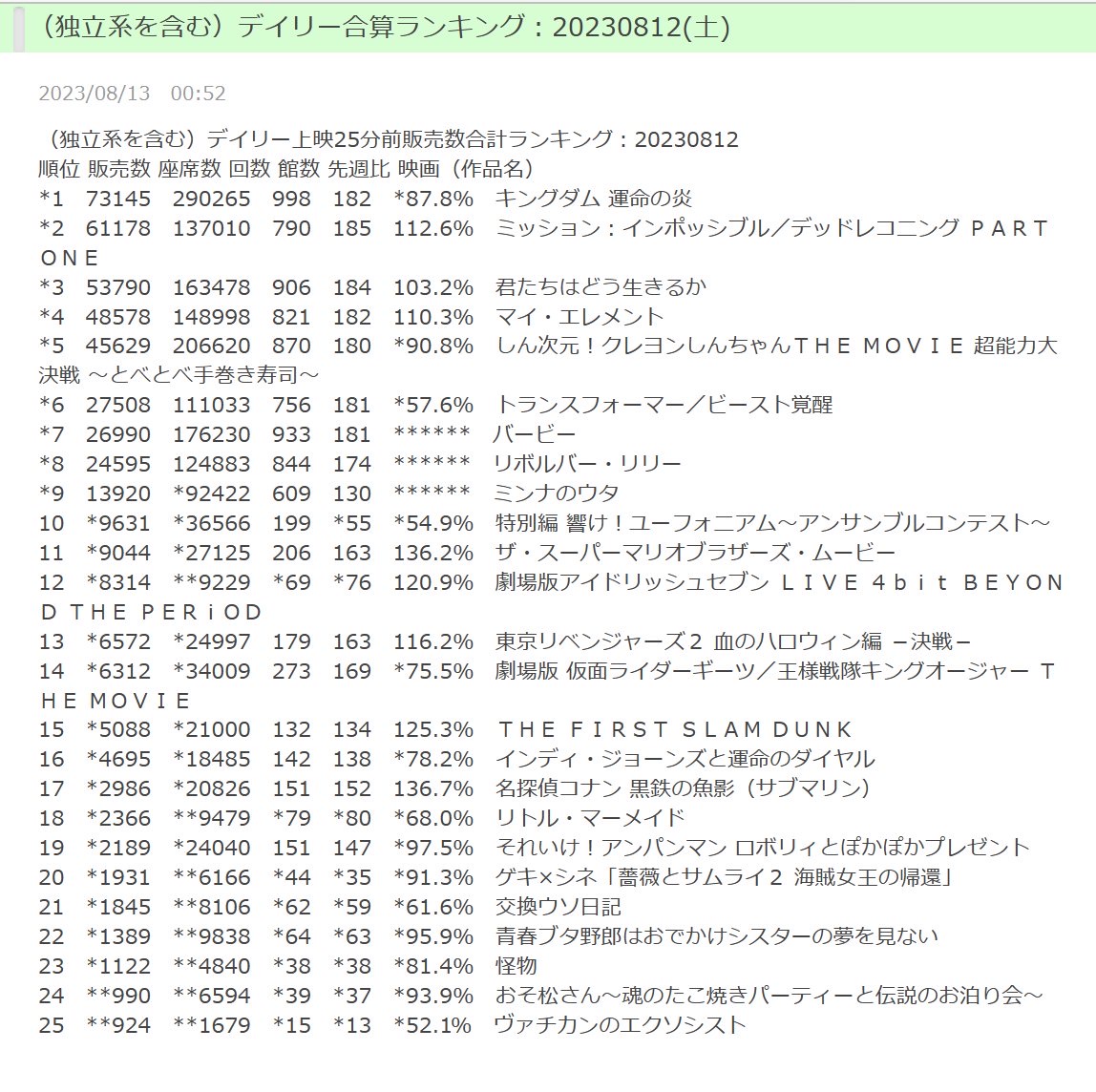 そして、ついに8月11日(金)より待望の日本公開がスタート。『君たちはどう生きるか』『ミッション:インポッシブル/デッドレコニング PART ONE』など既に年間のTOP10の興行収入を記録している大作がひしめく中、週末の興行収入は3日間で1.9億を突破し(初週3日間興行収入 190,939,600円、動員126,916人)堂々の1位を記録。