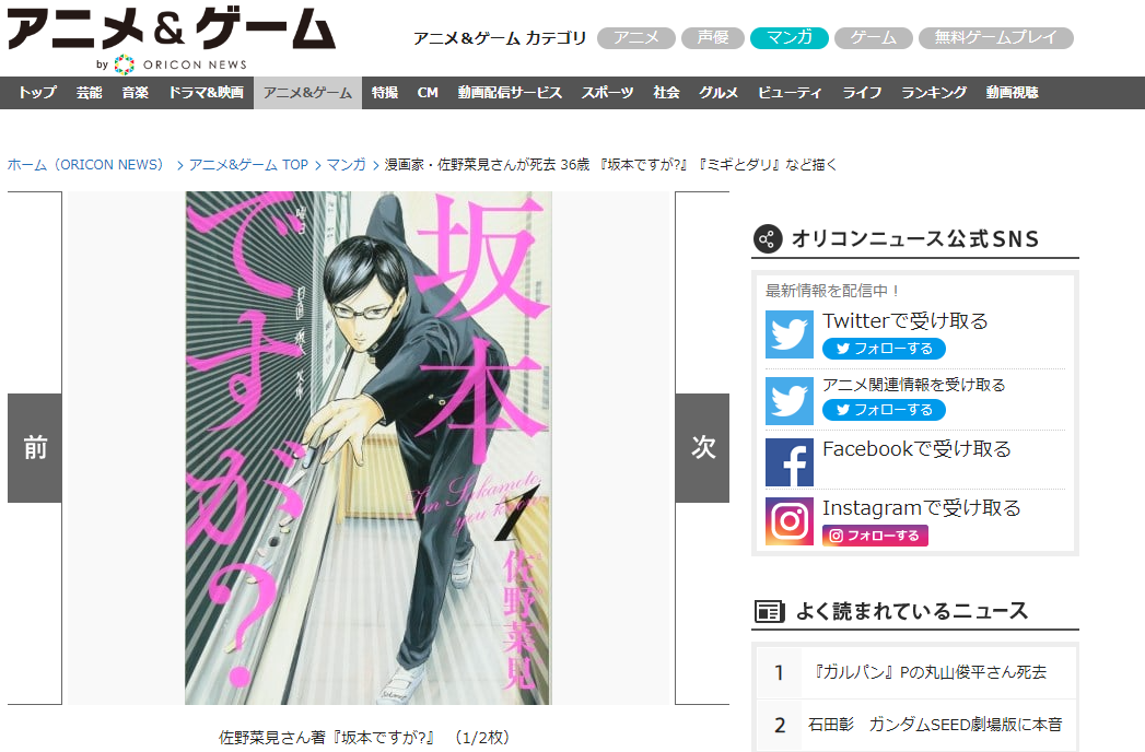 【訃報】坂本ですが?の作者『佐野菜見』さん死去