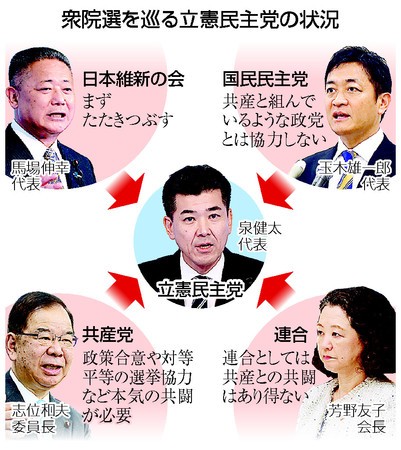 >立民内には「共産とも一定の協力は必要」とする声は多く、
