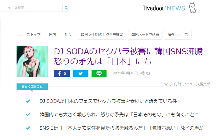 性的被害を受けたDJ SODAを擁護し、加害者への批判は熱を帯びる一方で、一部の韓国ネット民は日本という国に対する非難へと過激さが増しているようだ。