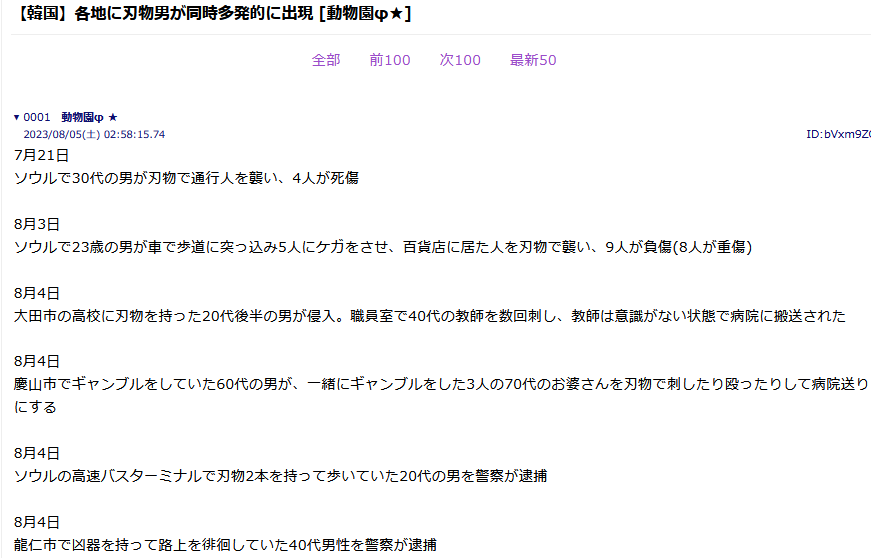 【通り魔】韓国・ソウルでナイフ襲撃事件が続く、タイ大使館が警戒呼びかけ[08/11]