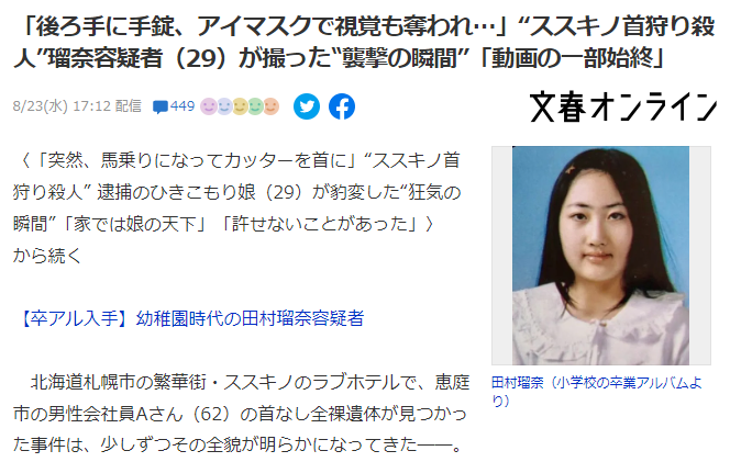 【ススキノ首狩り殺人】「後ろ手に手錠、アイマスクで視覚も奪われ…」瑠奈容疑者(29)が撮った‟襲撃の瞬間”「動画の一部始終」 [ぐれ★]