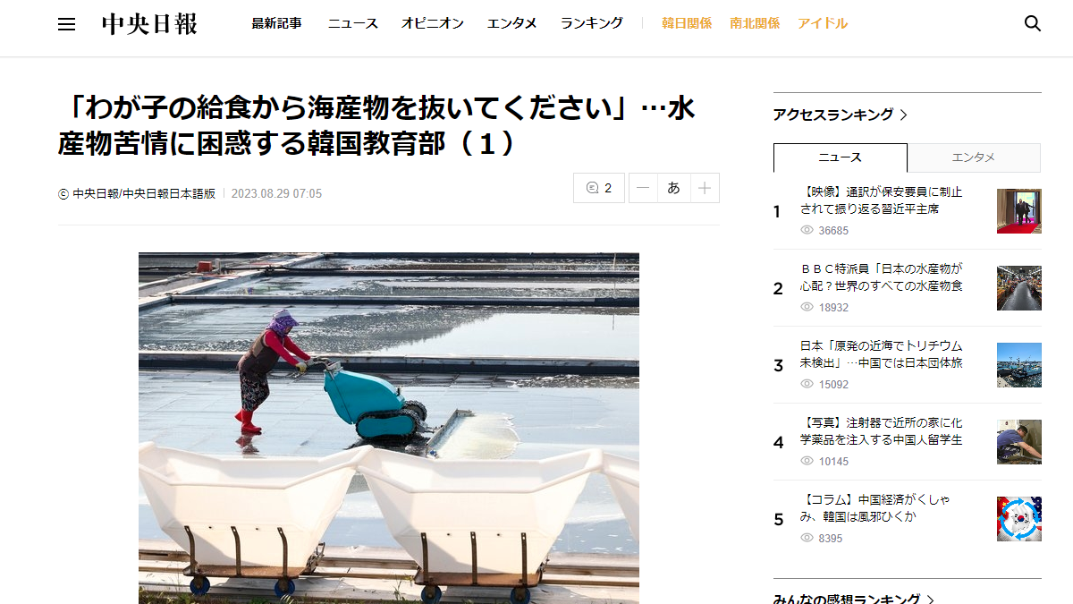 日本福島汚染水の放出問題が学校に飛び火している。汚染水の放出と全国小・中・高校の始業時期が重なり、給食の安全を心配する一部の保護者の苦情が本格化しているためだ。