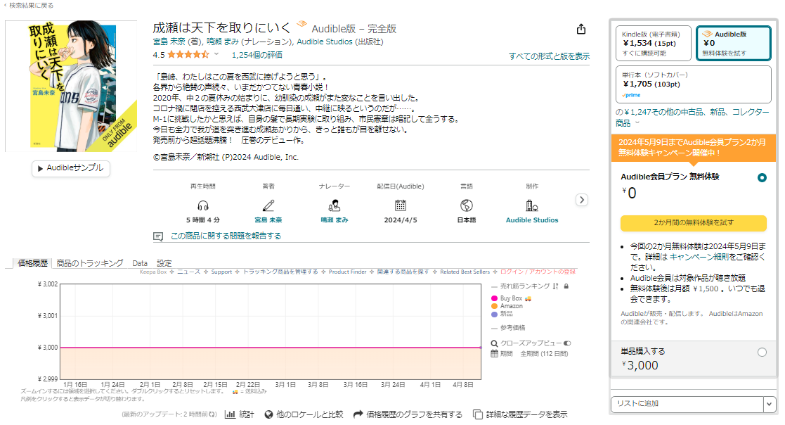 Audibleさんは月1500円のプレミアムサブスクさんやからな!!!