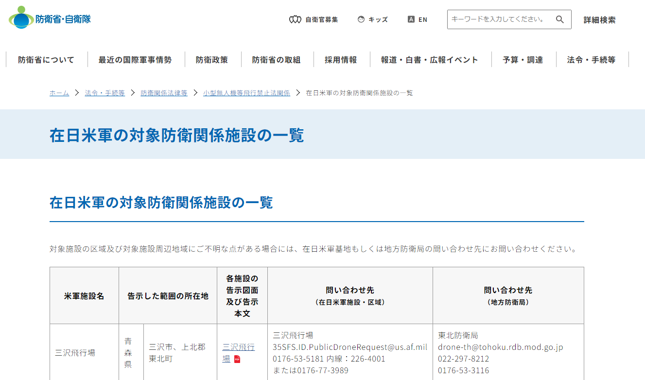https://www.mod.go.jp/j/presiding/law/drone/list_zaibeigun.html
