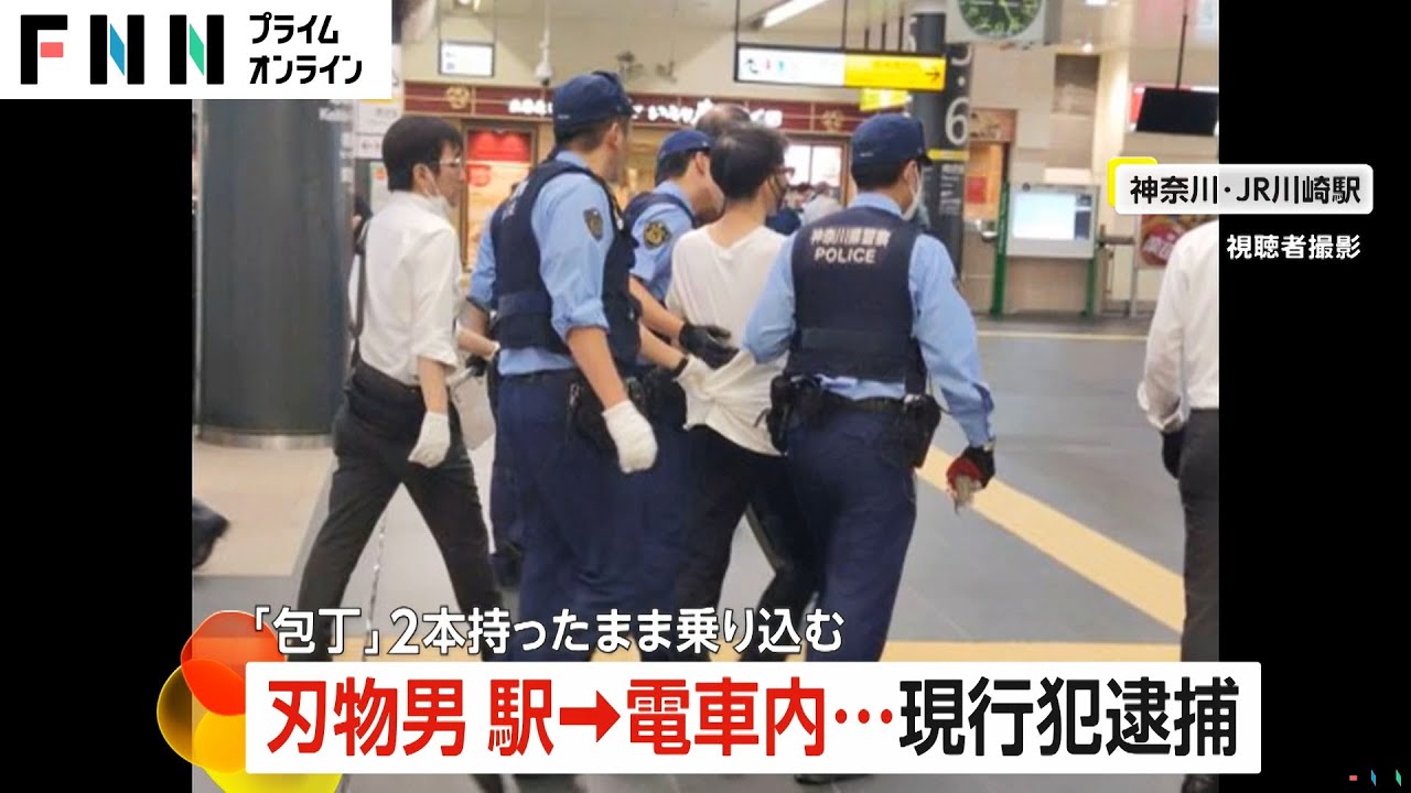 東海道線車内に「刃物持った人がいる」 川崎駅で男確保 3500人に影響 [蚤の市★]JR東海道線で刃物を2本所持容疑 自称・調理師で韓国籍の男を現行犯逮捕 [6/5] [右大臣・大ちゃん之弼★]