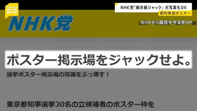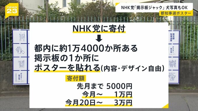 NHK党“掲示板ジャック”で都知事選の候補者ポスターに犬や猫が? 掲示板スペースが足りなくなる? 自治体が混乱