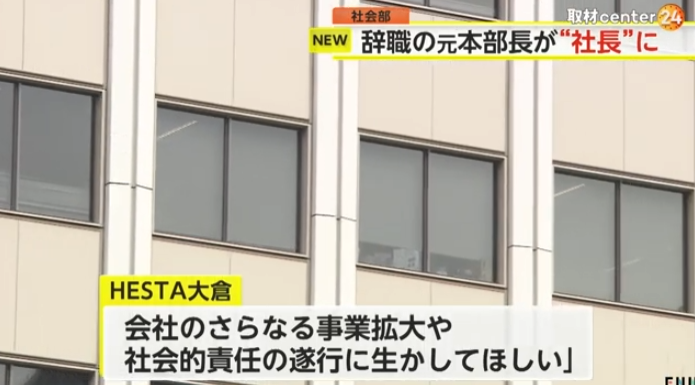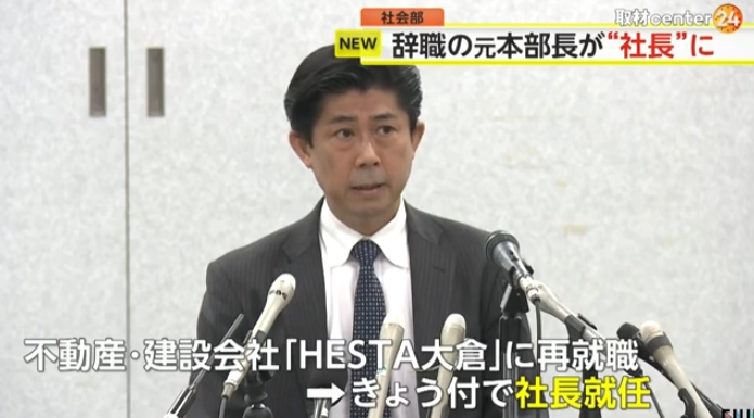 その後、全国でスマートホームなどの事業を展開する不動産・建設会社「HESTA大倉」に再就職していましたが、26日付で社長に就任しました。 HESTA大倉は「過去の経験で培ったリスクマネジメント能力を会社のさらなる事業拡大や、社会的責任の遂行に生かしてほしい」としています。