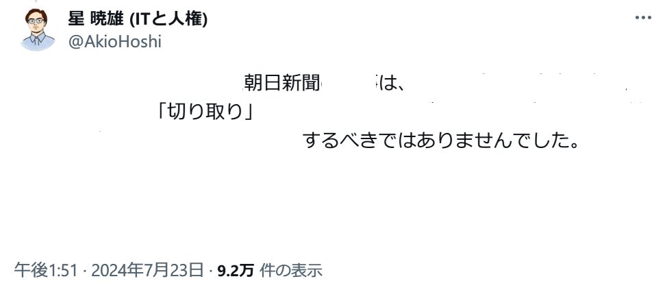 トヨタ会長の発言を報じた朝日新聞の記事は、発言の文脈や全文を伝えず、その一部の「切り取り」かもしれません。だとしても、切り取った結果として失言になるような発言をするべきではありませんでした。