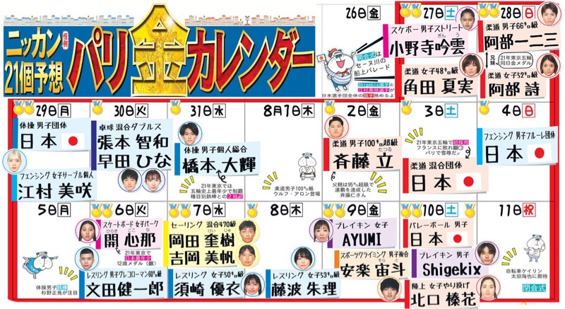 ■ 【速報】 日本がメダルラッシュ!阿部一二三「金」スケボk14歳吉沢恋・赤間「金・銀」フェンシング男子・加納「金」