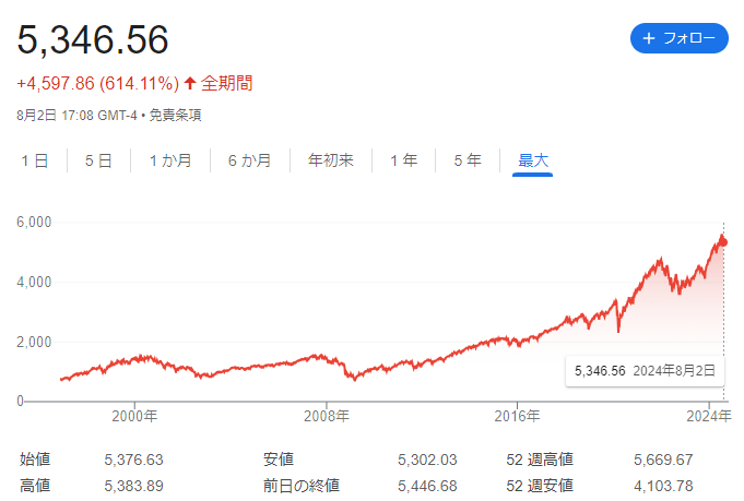 何十年単位で見たらアメリカの株価はずっと上がってる