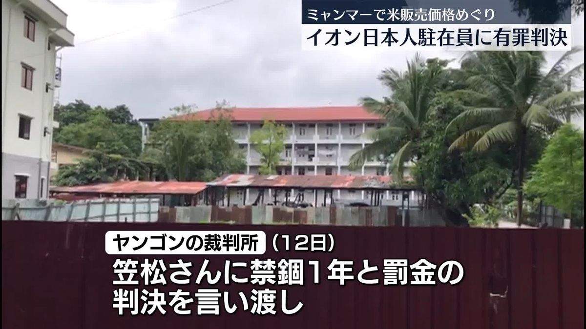 【バンコク時事】ミャンマーの最大都市ヤンゴンの裁判所は12日、軍事政権が設定した価格より高くコメを販売したとして生活必需品・サービス法違反の罪に問われた流通大手イオンの駐在員、笠松洋さん(53)に、禁錮1年の実刑判決を言い渡した。外交筋が明らかにした。