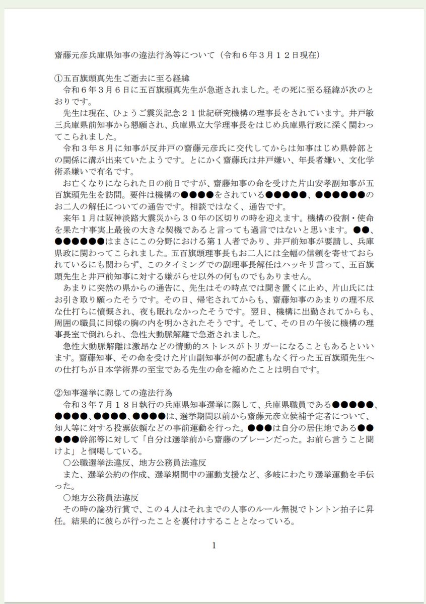 元局長の告発文が想像以上にヤバイ「斎藤知事の圧力でジジイが動脈解離で憤死した」😨 [422186189]