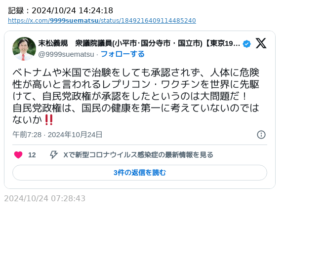 なお別の反ワク立憲議員は削除逃亡した模様