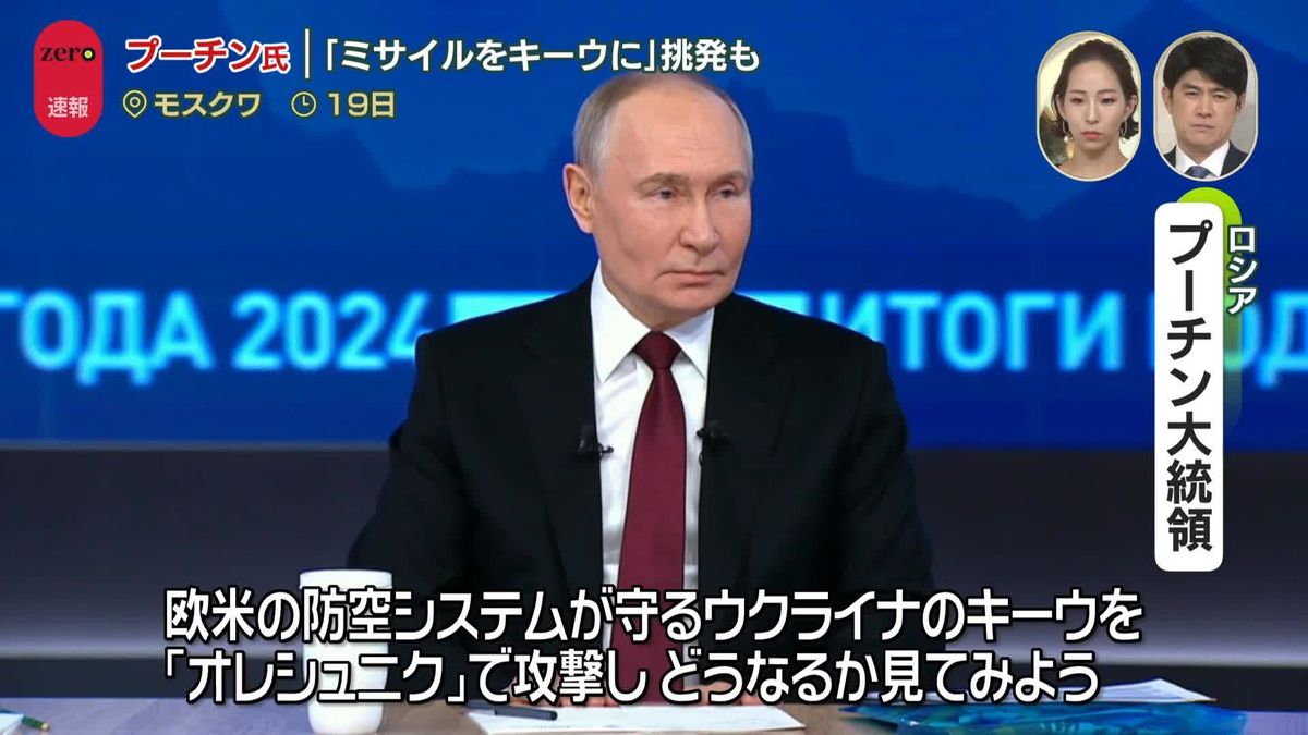 プーチン氏、西側との「ミサイル決闘」申し込み 新型ミサイル「オレシュニク」は迎撃不可能と改めて強調ロシアのプーチン大統領は19日、同国の新型中距離弾道ミサイル「オレシュニク」について改めて迎撃不可能であると強調し、オレシュニクと西側の防空システムのどちらが優れているか対決しようと述べた。