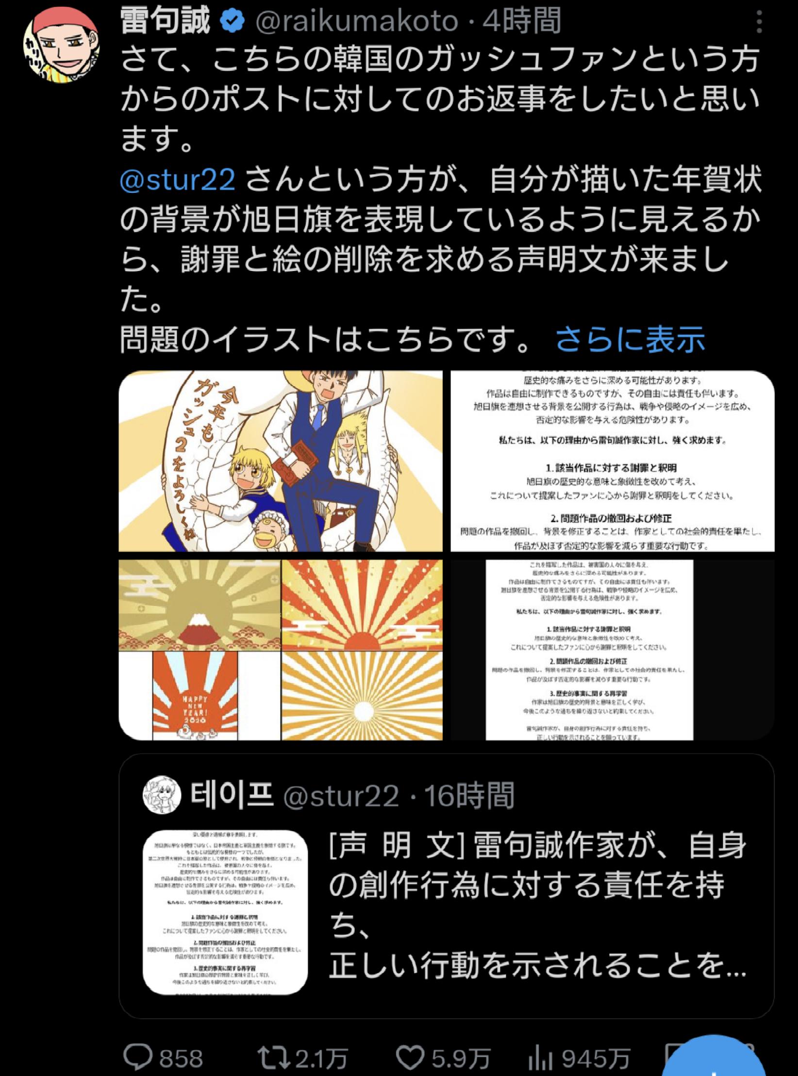 【悲報】金色のガッシュの作者、Twitterでチョンに絡まれる...新年のイラストが旭日旗に見えるニダ!