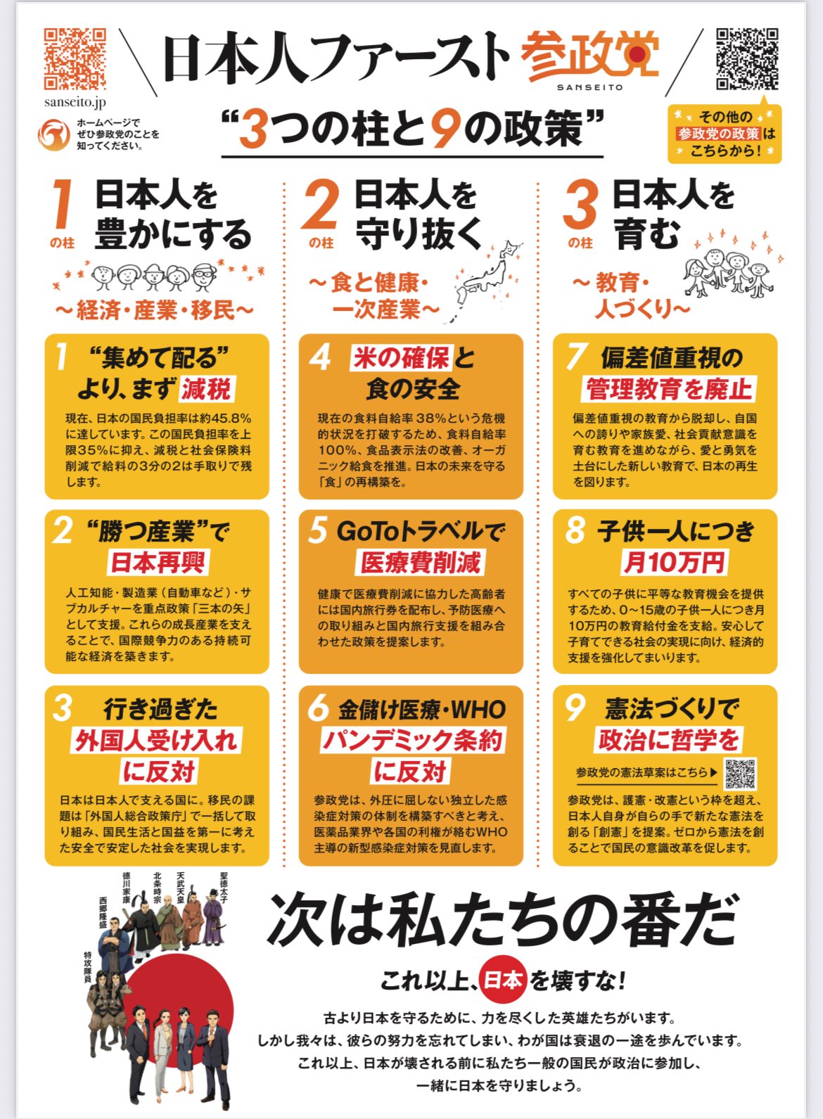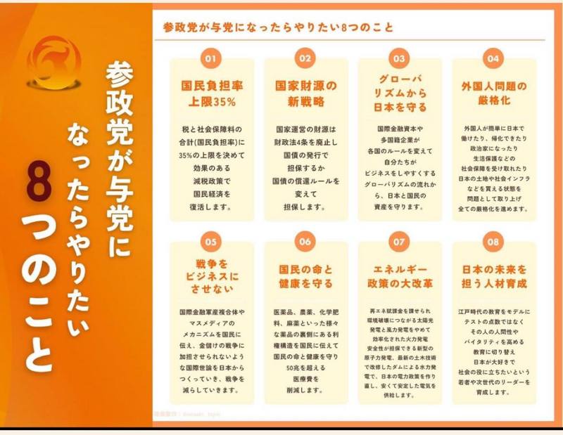 【衝撃】参政党の政策一覧、ヤバすぎる……