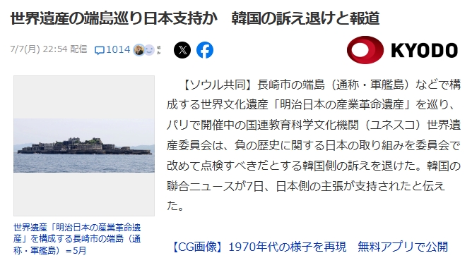 - ユネスコではもう軍艦島の議論できない…韓日過去史票対決で韓国敗北=韓国の反応