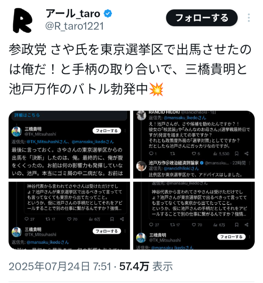 ■【悲報】池戸万作さんと三橋貴明さん、参政党・さや氏を巡ってガチの誹謗中傷が飛び交う大喧嘩