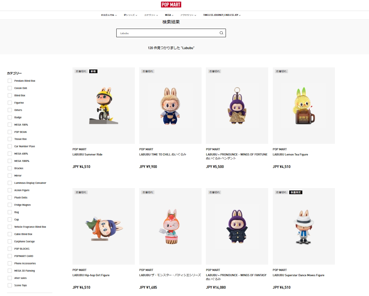 ラブブ人形なんてどこ行っても見かけません。
