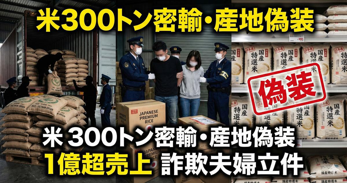 大阪府警は1日、密輸入したコメを日本産と偽って国内で販売したとして、詐欺容疑などで東大阪市新町の「合同会社Frechi」代表社員の女(37)=ベトナム国籍=と夫(47)を追送検した。