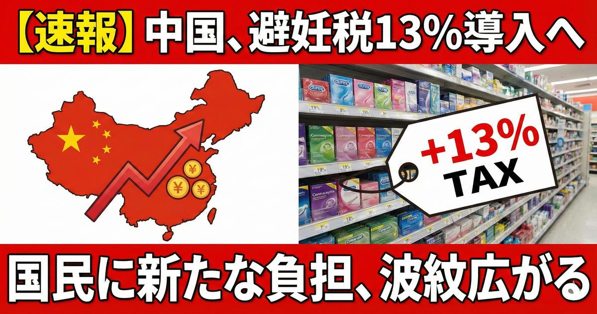 中国が少子化危機克服の対策として、コンドームなど避妊具や避妊薬に税金を課す特段の措置を取ることになった。
