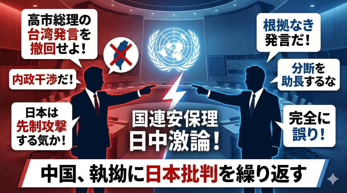 ・国連安保理にて中国大使が、高市総理の台湾関連発言を「内政干渉」とし撤回を要求。・日本の山崎大使が即座に反論。「平和を議論する場で分断を助長する根拠なき発言」と批判。