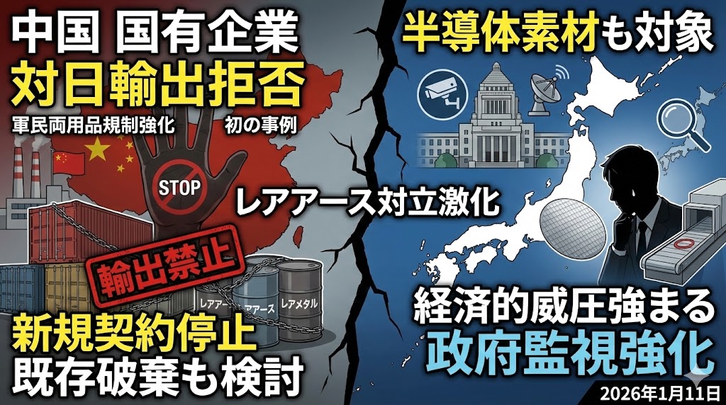 自由主義陣営の一員として、特定の独裁国家に供給網を握られるリスクを改めて痛感する事態であり、政府には代替ルートの確保を含めた迅速な対応を期待したい。