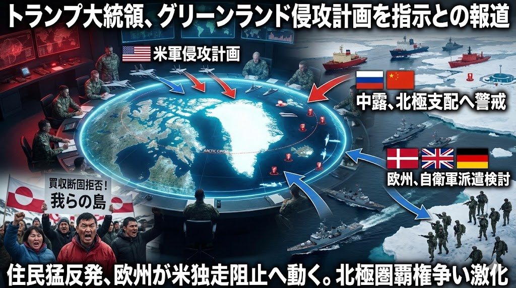 アメリカのトランプ大統領が、軍の司令官らにグリーンランド侵攻計画の策定を指示したと英紙が報じた。トランプ氏は「我々がやらなければ、ロシアか中国がグリーンランドを支配する」と主張し、強硬な手段も辞さない構えを見せている。