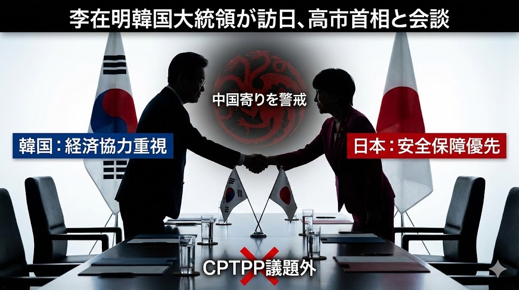 李在明大統領が13~14日と日本を訪問し、高市首相と会談を行う。今回の会談では、韓国の包括的・漸進的環太平洋パートナーシップ協定(CPTPP)加盟に関する内容は盛り込まれない見通しだ。