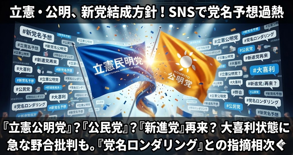・立憲民主党と公明党の新党結成方針を受け、SNS上で名称予想が過熱している。