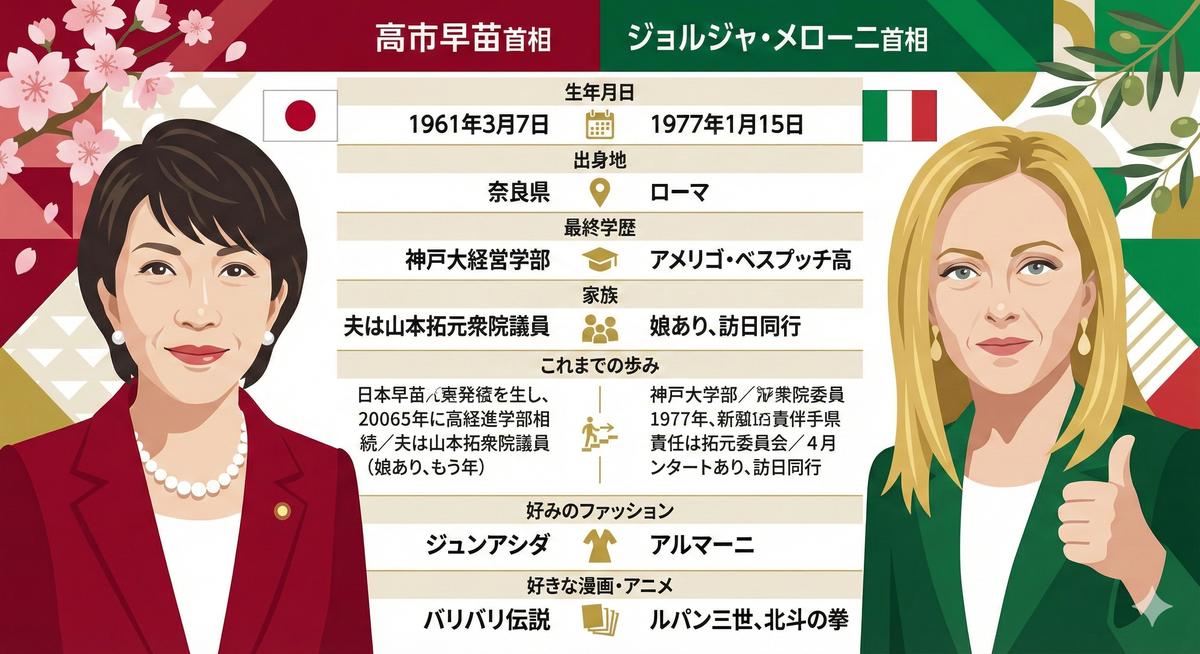 | 項目 | 高市早苗(日本) | G. メローニ(イタリア) |
