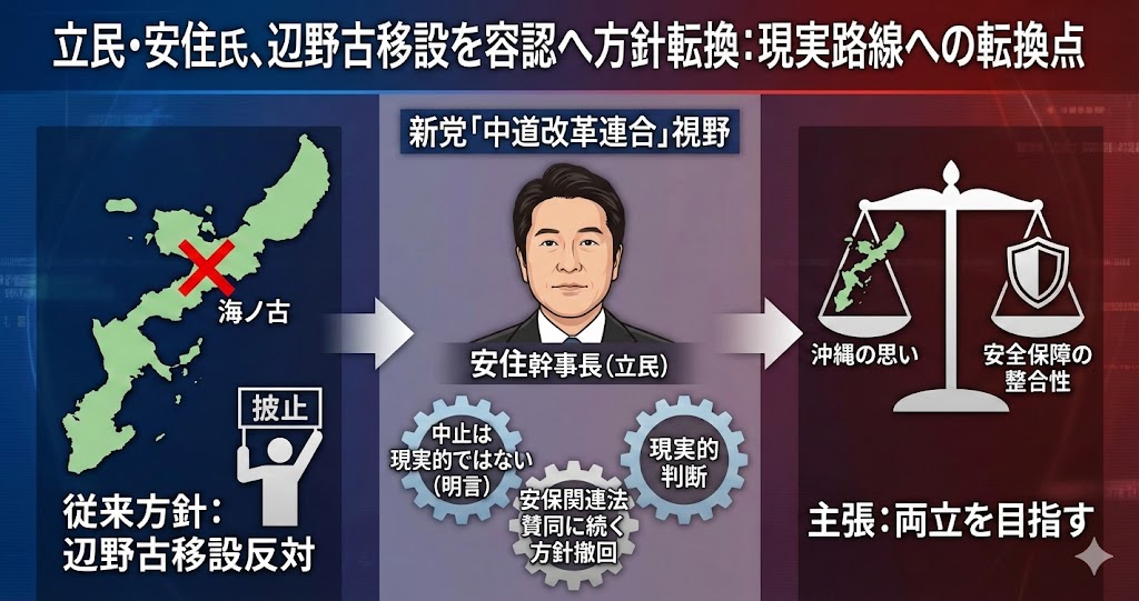 引用元: 【辺野古移設】立民の安住幹事長、辺野古移設に「中道が政権を担うことになれば、ストップすることは現実的ではない」方針説明