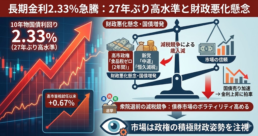 ・高市首相就任以来、金利は0.67%上昇しており、市場は政権の積極財政姿勢を注視。