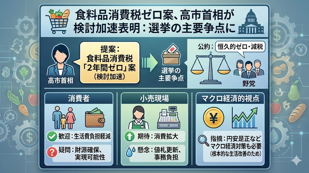 一方、野党側が「恒久的」なゼロを掲げている点は、人気取りの側面が否めず、持続可能な社会保障財源をどう確保するのかという視点が欠けているようにも見受けられます。また、現場のスーパーが懸念するように、頻繁な税率変更は中小企業の事務負担を激増させます。単なる「減税」という言葉の響きだけでなく、いかに迅速に、かつ混乱なく現場へ恩恵を届けるかという実行力が問われます。