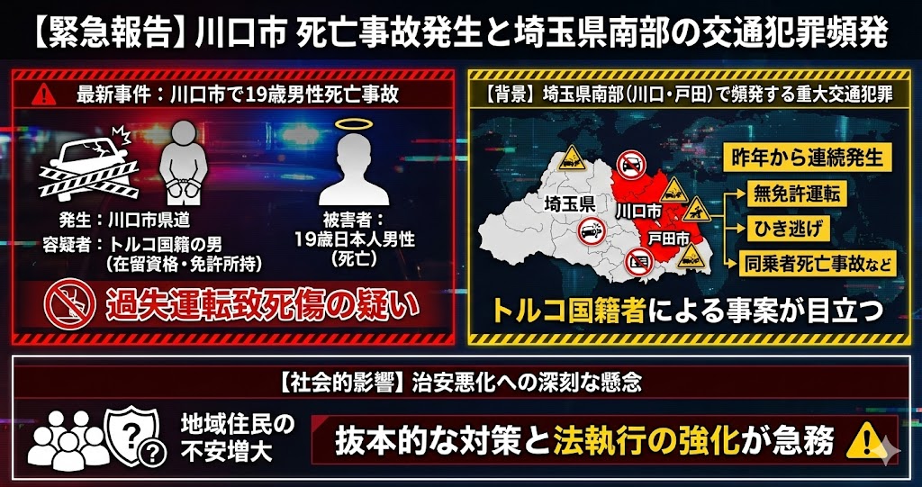 ・埼玉県南部(川口・戸田)では、トルコ国籍者による重大な交通犯罪が頻発している